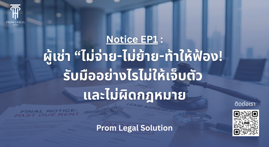 #PromLegalSolution #ทนายความ #บทความให้ความรู้ #กฎหมายธุรกิจ #คดีแพ่ง #ออกโนติส #Notice #หนังสือบอกกล่าวทวงถาม #หนังสือบอกเลิกสัญญา #ค้างค่าเช่า #ผู้เช่าไม่จ่ายค่าเช่า #ฟ้องขับไล่ #อสังหาริมทรัพย์ #สัญญาเช่า #ผิดสัญญาเช่า