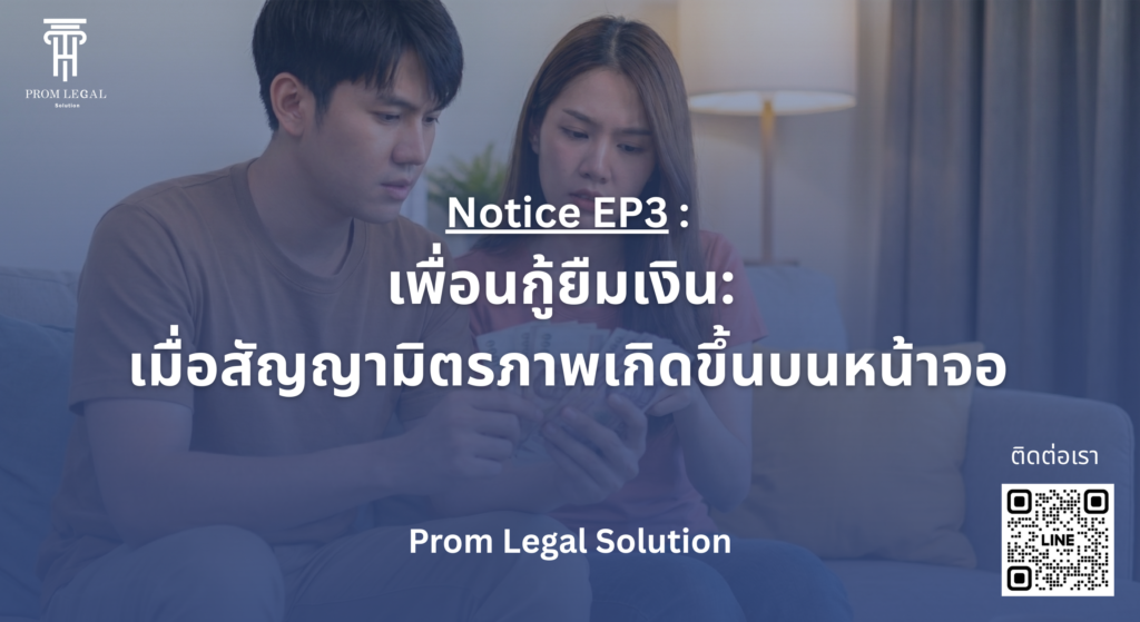 In Thai society, financial assistance is often seen as an act of kindness and generosity that reflects strong friendships. Many loans between friends nowadays take place through chat messages or bank transfers on mobile screens, relying primarily on trust. However, without proper caution, a “kind lender” may unexpectedly become someone who loses both money and friendship. Prom Legal Solution therefore explains the key legal principles regarding personal loans, helping you clearly understand the legal perspective and reduce risks from the beginning.